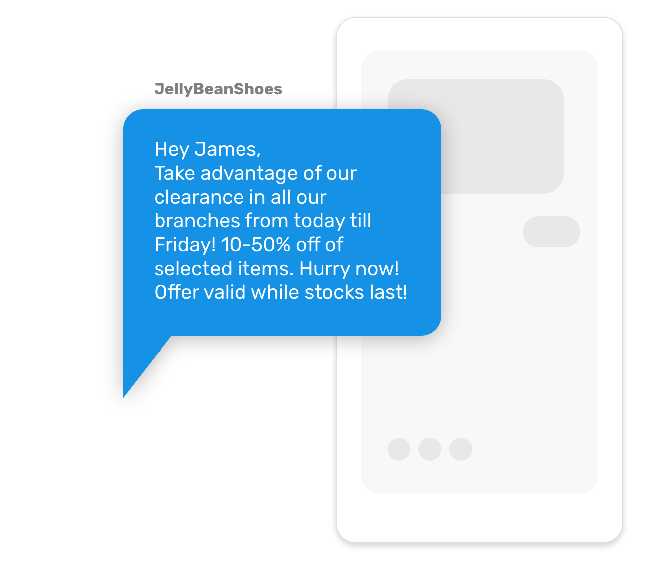 Transactional SMSs are delivered immediately they are sent, which makes them effective for notifications, reminders, two-factor authentication and more.